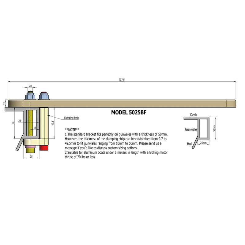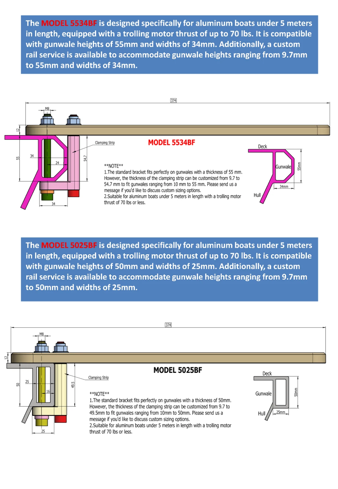 Suitable for electric motors with a maximum thrust of less than 70 lbs (e.g., 55lb, 60lb, 65lb, and 70lb). Ideal for small boats and anglers seeking a compact, economical solution. Mount weight: 4.2 kg.