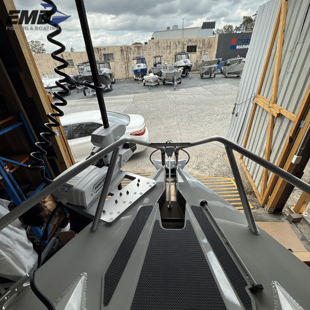 The bracket is secured using 7 × M8 stainless steel bolts, 4 of which pass through the gunnel, providing exceptional holding strength. Each bolt delivers up to 2,500 kg of tensile strength and 1,500 kg of shear strength.
